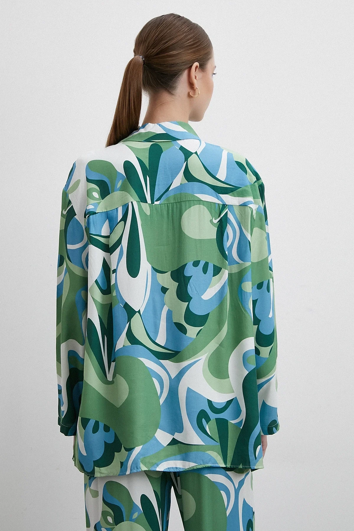 Dalga Desenli Oversize Gömlek