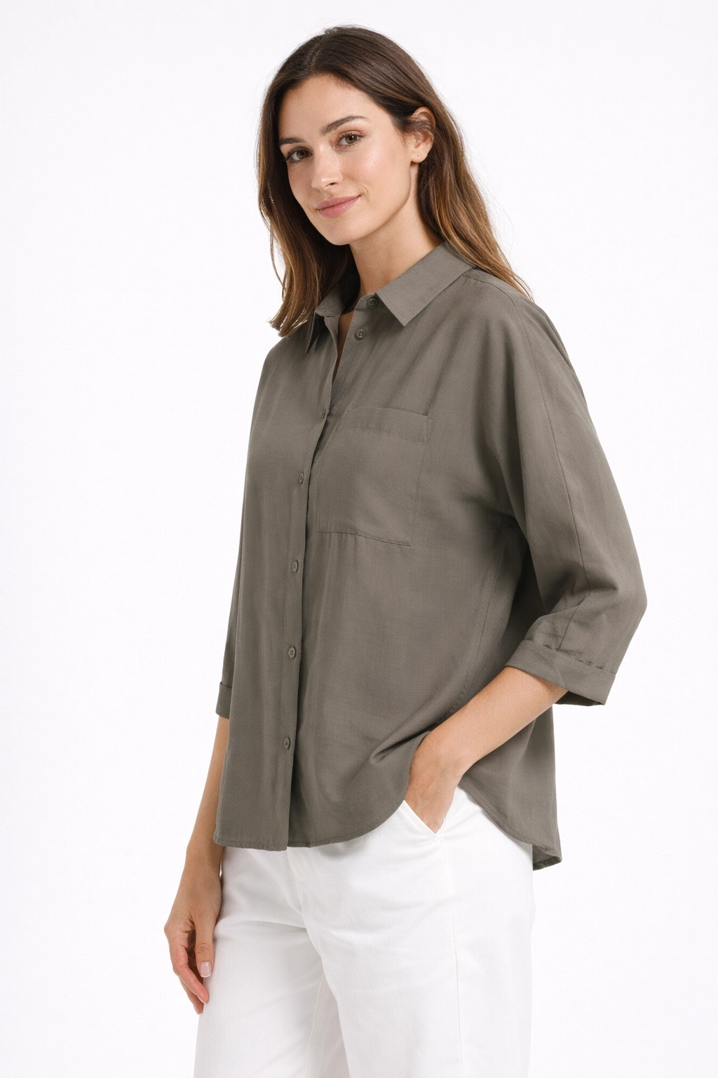 Zeytin Yeşili Oversize Uzun Kollu Gömlek